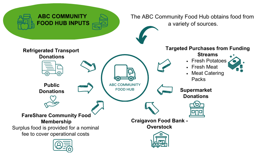 Launched in 2022, the ABC Food Hub supports community organisations in the Armagh, Banbridge and Craigavon borough Council by redistributing surplus food from across the Borough.
